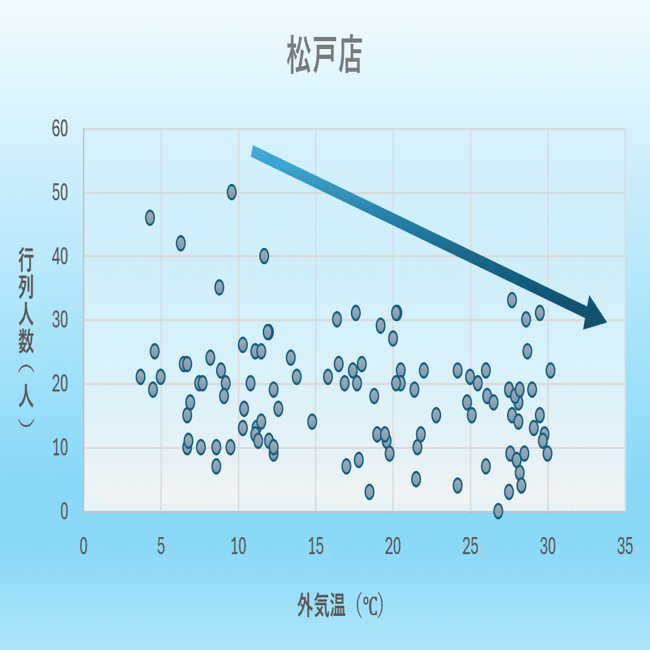 10℃〜30℃のときが行列最長。それ以上でもそれ以下でも行列は短くなる傾向。
